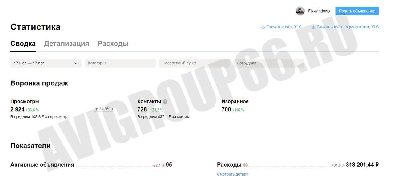 Наша история работы с данным клиентом достаточно обширная - начинали с одного аккаунта с пакета размещений 30 объявлений и доросли до 2 аккаунтов с общим бюджета порядка 1 млн руб в месяц